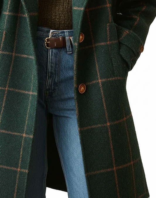 Ahorra70%ANA | ELEGANTE ABRIGO DE LANA A CUADROS